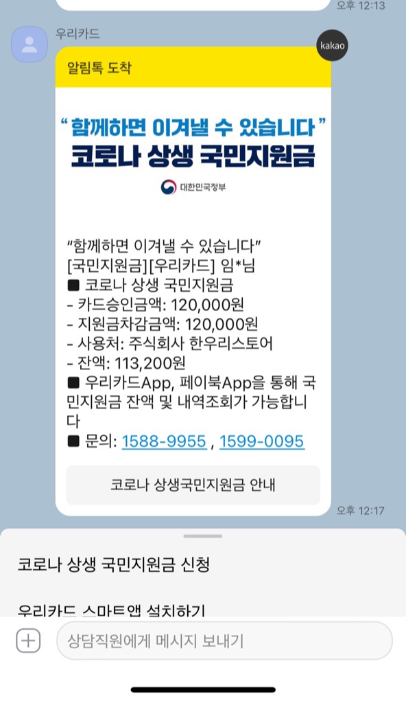 코로나 상생 국민지원금 (5차 재난지원금) 카드사별 받는 방법 우리은행