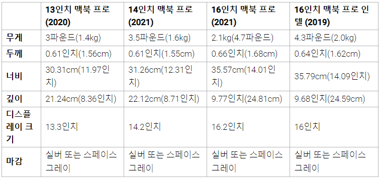 14인피 vs16인치, 신형 맥북 Pro vs구형 맥북 비교