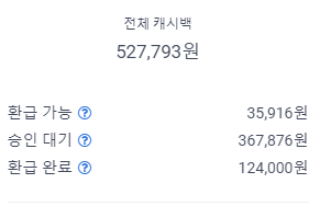 다만 캐시백은 구매완료 되는 시점에서 몇일 후에 환급이 가능합니다.