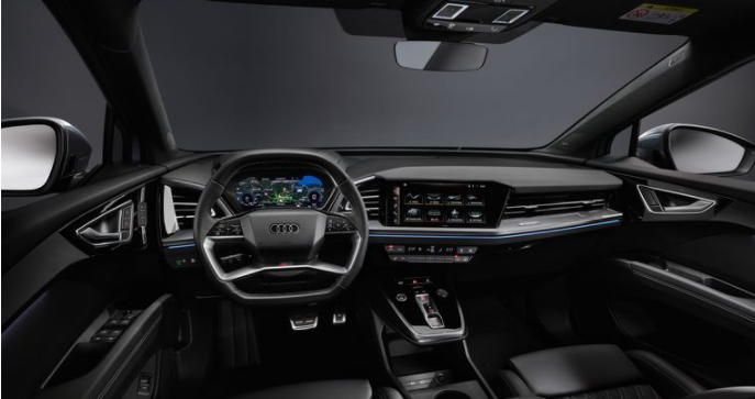 아우디 Q4 이트론 내부는 최신 및 최고의 장치를 위한 기술 쇼케이스입니다. 아우디 Q4 이트론의 캐빈은 다른 Audis에서 사용할 수 있는 것과 유사하며 터치 감지 컨트롤이 있는 사각형 스티어링 휠 및 토글 스위치 기어 선택기와 같은 몇 가지 고유한 기능을 통합합니다.