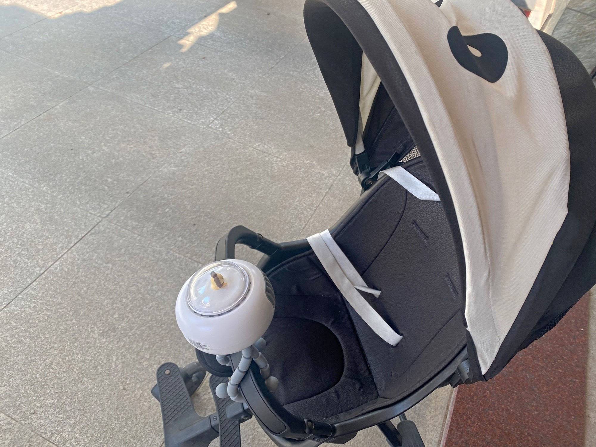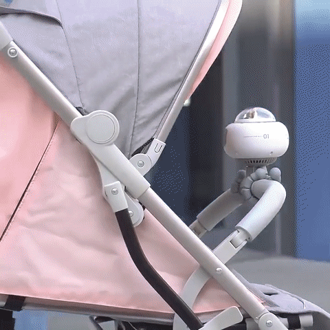 이렇게 유모차에 달아서 사용하면 야외에서 아이가 고열로 가지 않고 시원하게 유지해 줍니다.