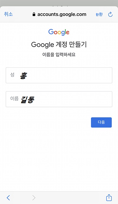 Google을 선택 후 계정 만들기 클릭 → 본인 계정 클릭
