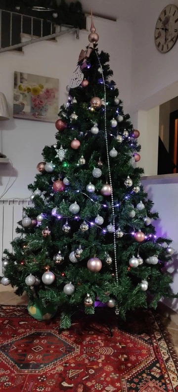 그래도 크리스마스트리에 LED 전구를 설치해두니 정말정말 이쁘더라구요 현재 보라색으로 설정했습니다.