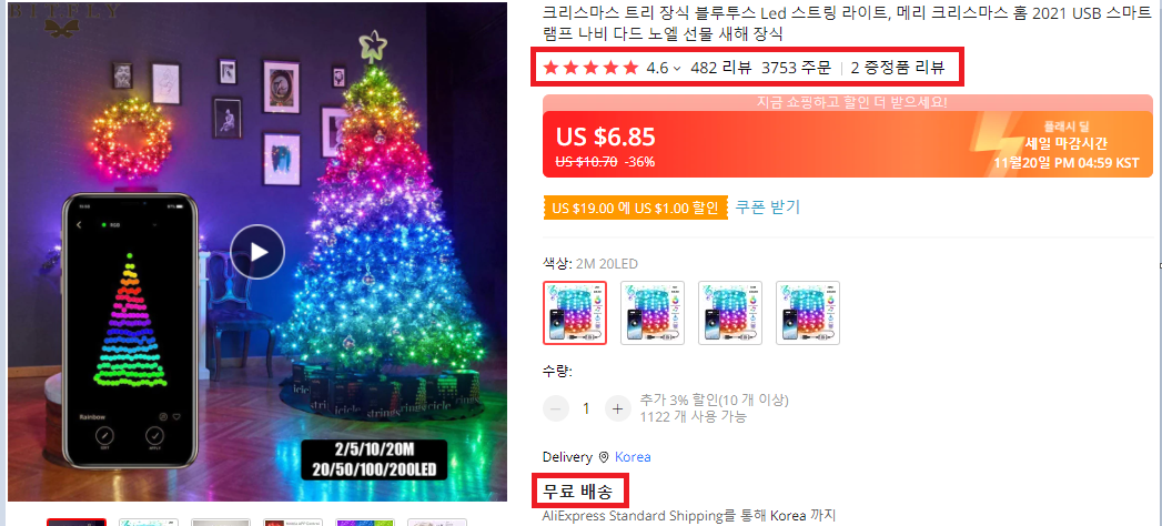 그래서 아주 빠르게 크리스마스트리 LED 전구를 구매해서 이렇게 블로그를 쓸 수 있네요