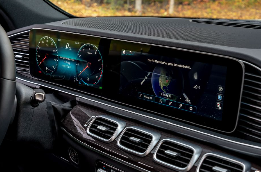 스크린 벽은 GLE의 대시보드를 지배하고 완전한 디지털 게이지 디스플레이와 자동차의 인포테인먼트에 대한 광범위한 보기를 하나의 패널에서 제공합니다.