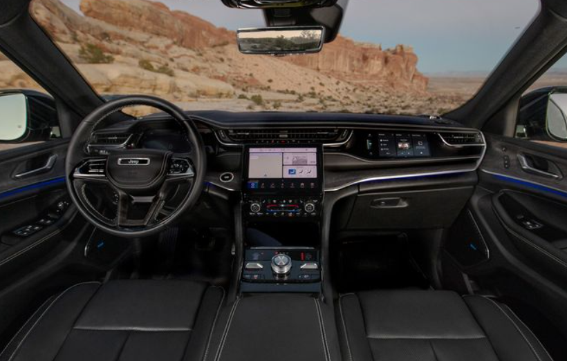 실시간 교통 및 날씨 업데이트가 포함된 대시 내 탐색은 선택 사항이며 고급 모델에는 디지털 게이지 클러스터, 10.0인치 헤드업 디스플레이 및 대시보드에 내장된 또 다른 10.3인치 디스플레이를 사용할 수 있습니다. 앞 좌석 승객에을 위한 Laredo 및 Limited 트림은 표준 6스피커 스테레오와 함께 제공되지만 구매자는 9스피커 Alpine 오디오 설정 또는 고급 19스피커 McIntosh 배열로 업그레이드할 수 있습니다.
