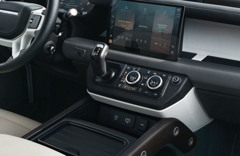 디펜더의 대시보드는 Pivi Pro라는 랜드로버의 새로운 인터페이스를 실행하는 10인치 터치스크린 인포테인먼트 시스템을 자랑합니다.