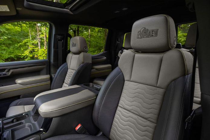 실버라도 ZR2 내부에는 13.4인치 대형 터치스크린 옆에 12.3인치 완전 디지털 계기판을 갖춘 매끄러운 모양의 대시보드가 있습니다.