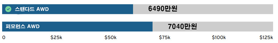 2개의 전기 모터에서 최대 483마력을 발휘하는 퍼포먼스 트림은 많이 좋아 보이지만 가성비를 따지면 스탠다드 AWD 트림을 추천드립니다..