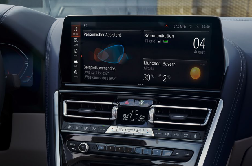 12.3인치 터치스크린은 8시리즈 그란 쿠페의 iDrive 인포테인먼트 시스템의 중심으로 대시보드 높은 곳에 장착되어 다양한 기능을 통해 작동됩니다.